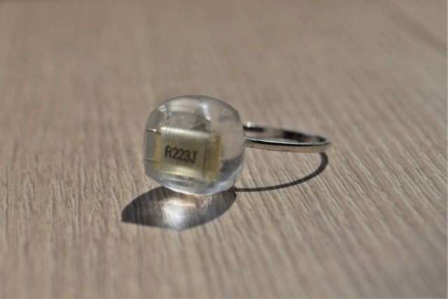 ーウラカタの晴れ舞台ー 廃棄されてしまうコンデンサーをあしらったリングです。 素材:アルミニウム(リング) サイズ:約11号~約13号 ※この製品はレジンを使用しています。 レジンは長時間日光を当てると変色する可能があります。 〇修理については送料をお支払いいただける場合のみ無料でお引き受けさせていただきます。 〇トラブル・不良品であった場合を除き、返品交換はご遠慮させていただいております。 〇発送事故による責任は負いかねますのでご了承ください。