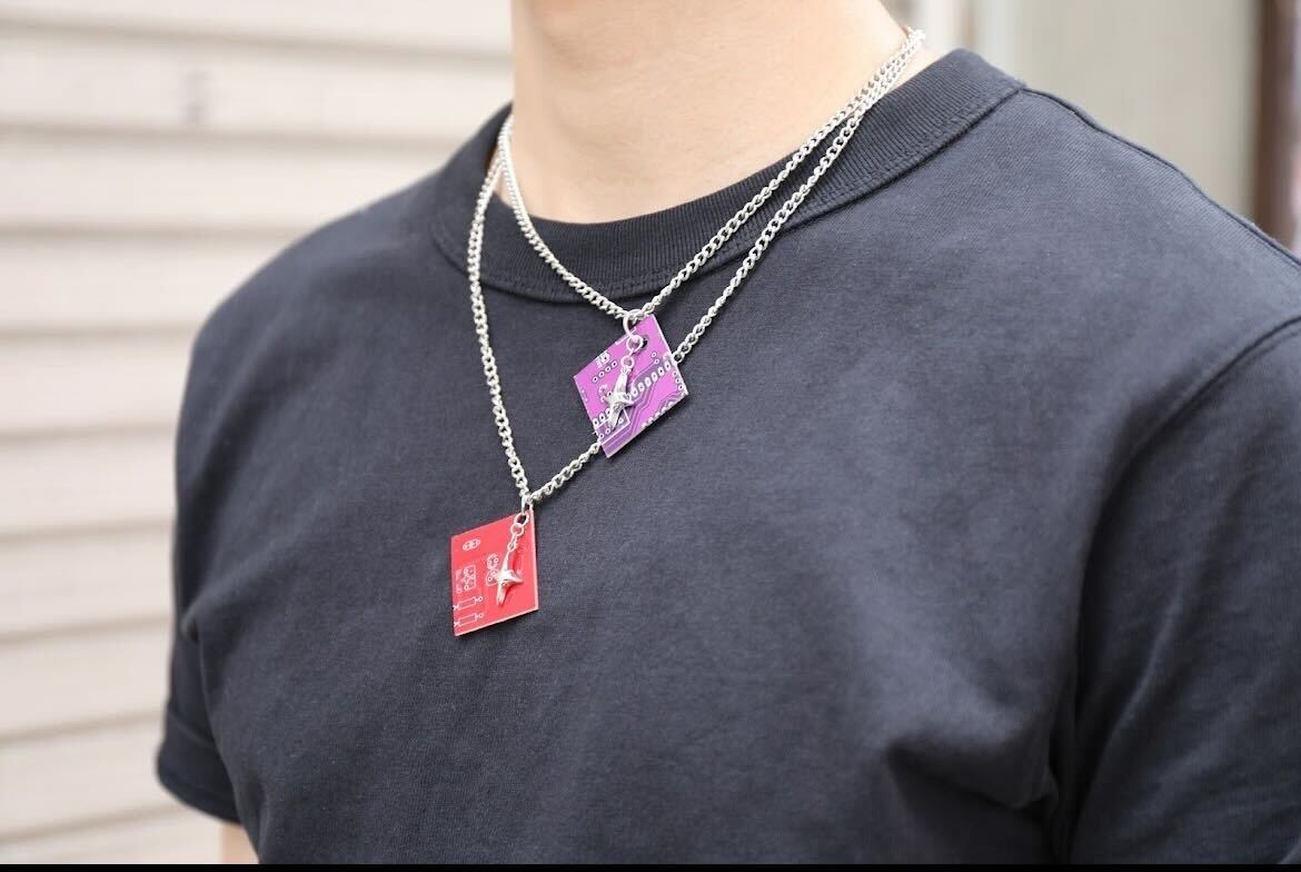 基板の凹凸やビビットな色調が映えるアクセサリーであり、